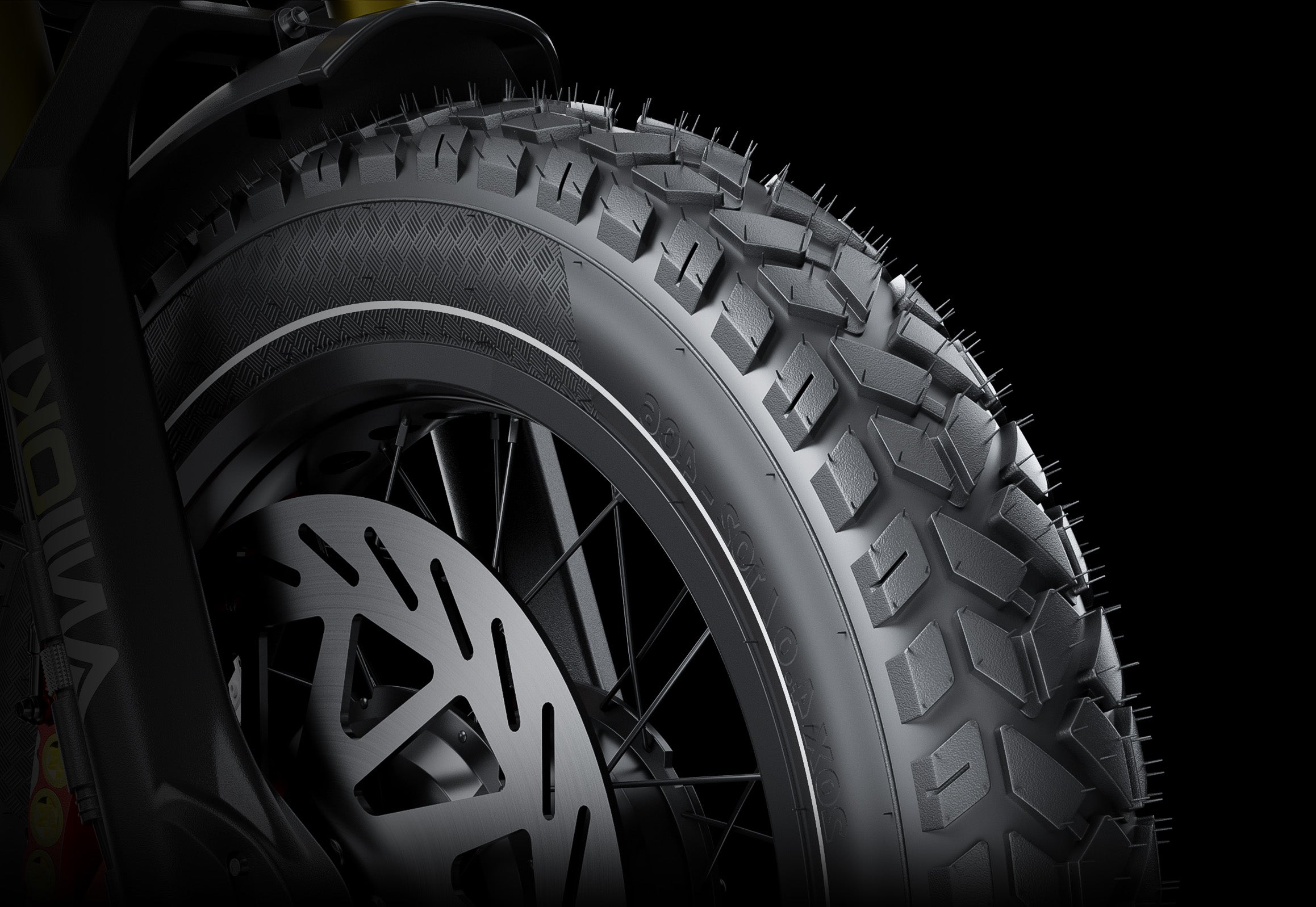 The newly upgraded 300mm oversized front hydraulic disc brake, equipped with a 6-piston system and high-precision brake pads, is wear-resistant and heat-resistant, maintaining consistent braking power even during extended downhill rides.