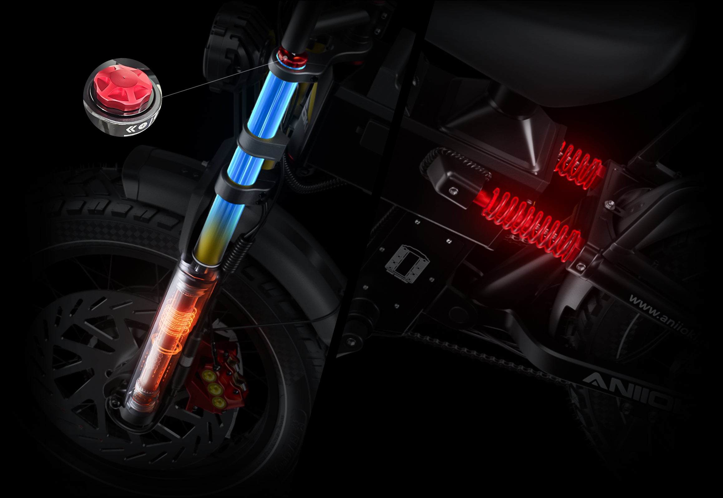 The A8 Pro Max Dual Motor is equipped with new dual motor technology, which allows you to easily switch between front-wheel, rear-wheel, or all-wheel drive modes with the simple operation of a button. This feature allows you to adjust the traction of the bike to suit the terrain and your riding style, giving you maximum performance and stability.