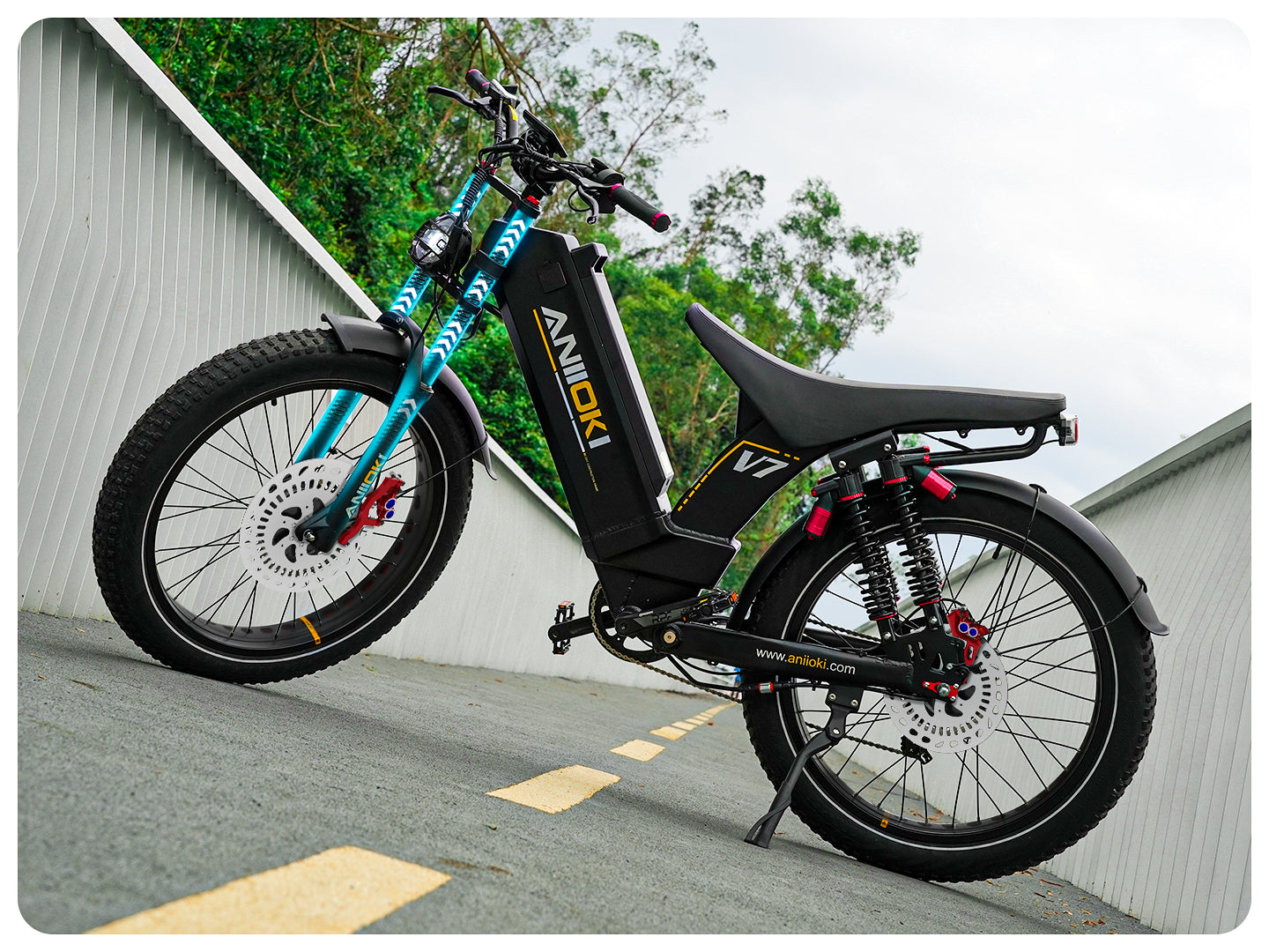 The V7 Dual Motor is equipped with new dual motor technology, which allows you to easily switch between front-wheel, rear-wheel, or all-wheel drive modes with the simple operation of a button. This feature allows you to adjust the traction of the bike to suit the terrain and your riding style, giving you maximum performance and stability.